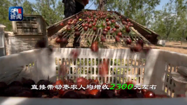 目前,全县板枣树栽植面积达15万亩,其中千年以上古树有17500多株,五百年古树有5万多株。特别是今年,稷山全县板枣丰收,总产量将超过5000万公斤,产值可达6亿元,直接为当地枣农人均增收2300元左右。(央视记者 裴大伟)