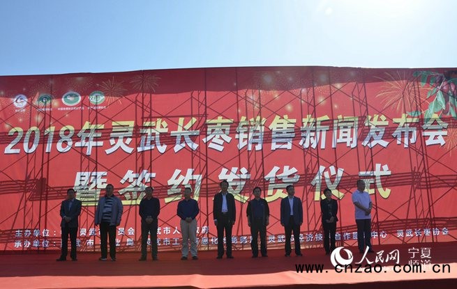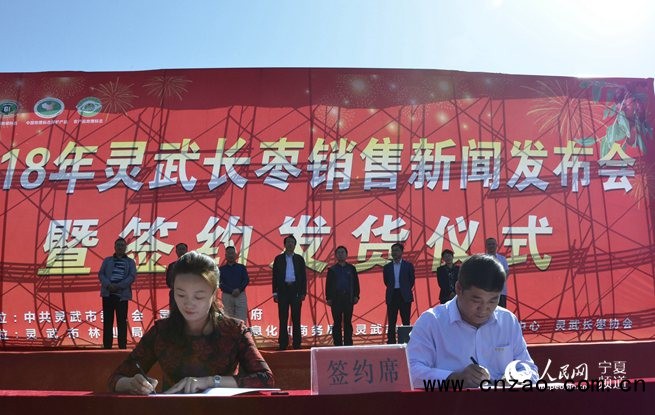 人民网银川9月22日电(穆国虎)为了灵武长枣“走出宁夏,走向全国”,21日下午,2018年灵武长枣销售新闻发布会暨签约发货仪式在宁夏灵武市召开。宁夏回族自治区林业厅科技处处长史振亚与灵武市相关领导共同见证了灵武市长枣种植企业与物流公司、电商平台、采购商等签订合作协议。