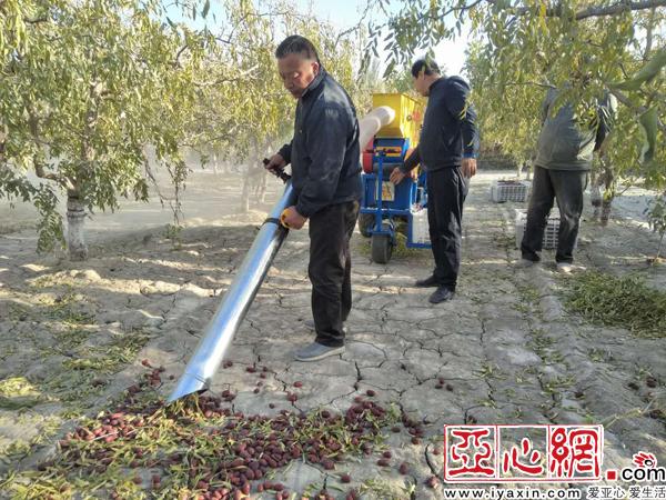 亚心网讯(通讯员 王若丹)10月16日,若羌县农业局驻铁干里克镇果勒吾斯塘村工作队在枣园中现场教学,给村干部和村民讲解红枣捡拾机的使用和调试方法,并现场进行操作示范(下图)。