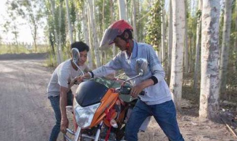 新疆阿拉尔市,罗小川为一名邮递员扶正摩托车。罗小川说,父亲去世后,希望妈妈在哪里,他就跟到哪里,不然对妈妈不放心。虽然压力很大,但他会认真去面对,创造一个美好的未来。罗小川的故事在当地果农中传开后,大家都对他竖起了大拇指,称赞他是一位孝子。