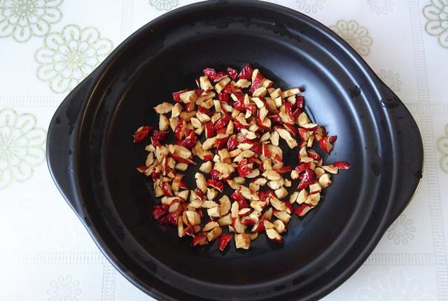 4、大红枣去掉核,也成成碎小的粒状,红枣碎比苹果小一点。
