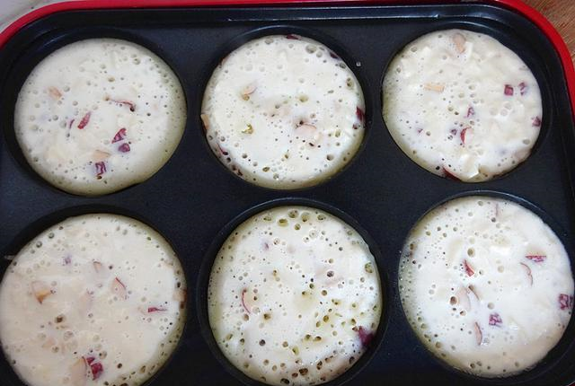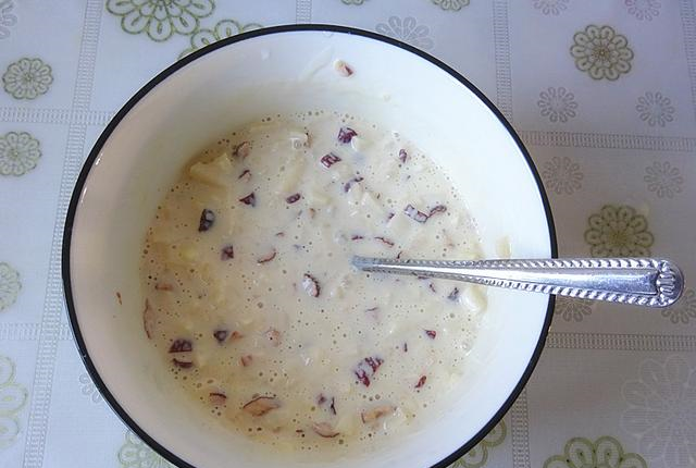 7、把切碎的红枣和苹果放入面糊中搅拌。