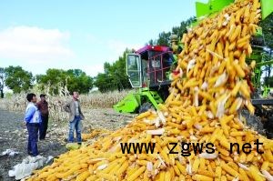 10月10日,王林虎(右)正在收玉米,他家的玉米亩产量达到了1500斤左右。今年呼和浩特市赛罕区“农业开发项目区”改造中低产田11900亩,项目全部建成后可扩大良种种植面积5100亩,新增主要农产品生产能力172万公斤。
