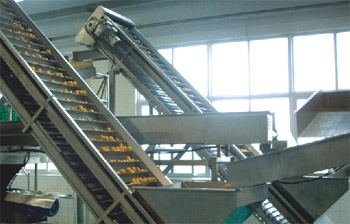 隔板提升机利用电机带动隔板移动,推移物料以实现输送提升目的。有水平式、倾斜式两种形式。采用不锈钢或塑料隔板作为承载体,适用于各种水果及蔬菜的输送提升,具有可多点加料或卸料等优点。
