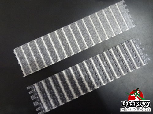 ・链板节距为12.7mm型(采用短节距)。・链板宽为50mm的固定宽度。・采用最小节距和独特的环状结构,最适合于小物件容器的稳定输送。・全树脂制,重量较轻,操作方便。