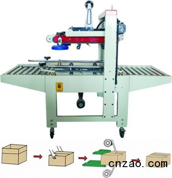 2、该款打包机封箱机采用即贴胶带封纸箱封口,经济快速、容易调整,可一次完成上、下封箱动作,采用印字胶带,更可提高产品印象。