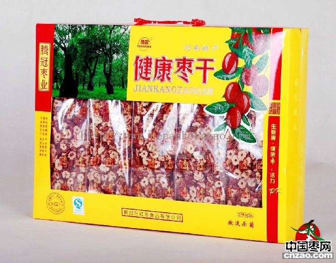 《产品文化》健康红枣是新郑灰枣和新郑枣的换代产品,本产品既继承了新郑红枣固有的营养成份,又有新疆枣的高糖份的特点,因此是日常食用,馈赠佳朋的最佳礼品.