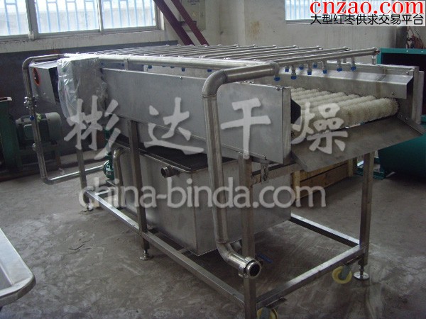 本机上部有高压水喷淋,大枣向前运行,杂物从条辊间排出,后端使用净水清洗后,使大枣达到清洗、去杂的效果,可将大枣中夹杂的叶片、头发、泥沙等杂物除去。毛刷清洗机不仅仅适用于大枣、红枣的清洗除杂,还是用于草莓、土豆、胡萝卜等不许损伤表皮的球状果蔬的清洗。