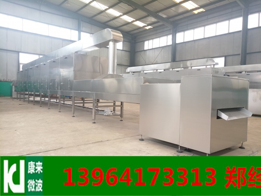 西瓜子微波干燥杀菌设备高质量的微波设备厂家:山东康来微波设备。专业厂家服务完善。适用于炒货领域大批量的各种干果类。如:核桃、板栗、核桃仁、葵花子、西瓜子、南瓜子、无壳瓜子、花生、榛子、香榧、果仁等焙炒、膨化。 其特点:物料在微波电磁场的直接作用下,均匀加热,无需经过热传导。卫生、高效,膨化效果好于常规工艺。同时在微波的热效应和非热效应的双重作用下具有杀菌功效。与传统工艺相比,生产环境好,没有热惯性,产品酥脆爽口,香味浓郁,膨化率高,色泽自然,营养成分损失少。在炒货淡季,该设备可用于食品的干燥、杀菌、烘烤、加热、膨化、熟化等工艺,一机多用。