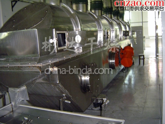 工作原理 物料自进料进口进入机内,在振动力作用下,物料沿水平面流化床抛掷,向前连续运动,热风向上穿过流化床同湿物料换热后,湿空气经旋风分离器除尘后由排风1:3排出.干燥物料由排料进口排出。适应物料 适用于化工、制药、食品、脱水蔬菜、粮食、矿产等行业的粉状、颗粒状物料的干燥、冷却等作业。 如:柠檬酸、味精、硼砂、硫铵、复合肥、萝l、丝、豆粕、酒糟、种子、矿渣、砂糖等。性能特点◎振动源是采用振动电机驱动,运转平稳,维修方便,噪音低,寿命长。◎流态化匀称,无死空隙和吹穿现象,可以获得均匀的干燥,冷却制品。◎可调性好,适用面宽。料层厚度和在机内移动速度以及全振幅变更均可实现无级调节。◎对物料表面的损伤小.可用于易碎物料的干燥,物料颗粒不规则时亦不影响工作效果。◎采用全封闭式的结构.有效地防止了物料与空气间交叉感染,作业环境清洁。◎机械效率与热效率高,节能效果好,比一般干燥装置可节能30一60%。结构示意图 技术规格尺寸型号ABCDEF重量(kg)GZQ3×0.303000300135090043016501250GZQ4.5×0.304500300135090043016501250GZQ4.5×0.454500450155095043017001670GZQ4.5×0.604500600165095043017001670GZQ6×0.456000450165095043017002100GZQ6×0.6060006001700100050017002410GZQ6×0.7560007501850100060018502840GZQ6×0.960009002000100060018503160GZQ7.5×0.6075006001850100060018503200GZQ7.5×0.7575007502000100060018503600GZQ7.5×0.975009002100100060018504140GZQ7.5×1.2750012002500115080020505190 机型流化床面积(M2)进风温度(oC)出风温度(oC)蒸发水份能力(kg)振动电机型号功率 KwGZQ3×0.300.970-14040-7020-35ZDS31-60.8×2GZQ4.5×0.301.3570-14040-7035-50ZDS31-60.8×2GZQ4.5×0.452.02570-14040-7050-70ZDS32-61.1×2GZQ4.5×0.602.770-14040-7070-90ZDS32-61.1×2GZQ6×0.452.770-14040-7080-100ZDS41-61.5×2GZQ6×0.603.670-14040-70100-130ZDS41-61.5×2GZQ6×0.754.570-14040-70120-140ZDS42-62.2×2GZQ6×0.95.470-14040-70140-170ZDS42-62.2×2GZQ7.5×0.604.570-14040-70130-150ZDS42-62.2×2GZQ7.5×0.755.62570-14040-70150-180ZDS51-63.0×2GZQ7.5×0.96.7570-14040-70160-210ZDS51-63.0×2GZQ7.5×1.2970-14040-70200-260ZDS51-63.0×2★以上蒸发量是最大蒸发量。