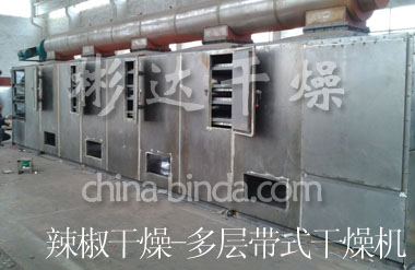 一、辣椒烘干生产线用途:DW系列带式干燥机是成批生产用的连续式干燥设备,用于透气性较好的片状、条 状、颗粒状物料的干燥,对于脱水蔬菜、中药饮片等含水率高、而物料温度不允 许高的物料尤为适合;该系列干燥机具有干燥速度快、蒸发强度高、产品质量好 的优点。对脱水滤饼类的膏状物料,需经造粒或制成棒状后亦可干燥。对于脱水蔬菜,一般使用带式干燥机串联使用,形成初干段、中间段及终干段。 在初干段中,由于物料含水量高,透气性差,故采用薄的铺料厚度,较快的运行 速度及较高的干燥温度。如对物料温度不允许超过60℃的物料,初干段中,干燥 气体温度可高过120℃以下;终干段内物料停留时间是初干段的3-6倍,铺料厚度 是初干段的2-4倍,对于物料温度不超过60℃的要求,可采用80℃的左右的干燥气 体。采用多段组合带式干燥机,可更好地发挥带式的干燥性能,使干燥更加均匀 。二、辣椒烘干生产线特点:1、可以调节空气量、加热温度、物料停留时间及加热速度以取得最佳的干燥效果 ;2、设备配置灵活,可使用网带冲洗系统及物料冷却系统;3、大部分空气循环利用,高度节省能源;4、独特的分风装置 ,使热风分布更加均匀,确保产品品质的一致性;5、热源可采用蒸汽、导热油、电或燃煤(油)热风炉配套;三.辣椒烘干生产线设计参数1、物料名称:辣椒;2、处理量:25/24h(成品量);3、含水率:初水分为23%-25%,终水分为14-18%;4、每小时水分蒸发量: 572-623kg/h四、辣椒生产线能耗及尺寸1、装机总功率:108KW;2、耗煤量:150kg/h;3、干燥段有效长度:60m;宽度:2m;4、热风温度:60℃~125℃;5、干燥时间:1.5~2.5小时;6、料层厚度:10~60㎜;7、网带运行速度:0.15~0.2m/分钟,变频调速;8、外形尺寸(长×宽×高):29×8×5m;五、设备运行成本设备耗电量108度电/H,工业电费每度电0.8元要86.4元/H。每小时耗煤150公斤,每公斤煤0.75元要112元/H。人工投料1个人,出料1人,热风炉1人,3个人工8小时240元,每小时30元。每小时运行费用元,每吨辣椒运行费用152元。